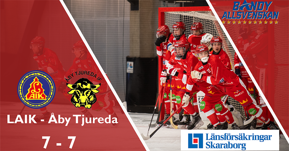 I dagens tuffa hemmamatch mot tabelltrean Åby/Tjureda fick LAIK delad pott om poängen efter slutresultat 7-7 (halvtid 5-4) Bortalaget Åby/Tjureda öppnade matchen starkt och gick till en 0-3 ledning redan efter 11 minuters spel. Hemmalaget reducerade både till 1-3, 2-3 och 3-3 innan matchklockan stod på 25 spelade minuter. 3-3 målet var en rejäl bomb i nättaket på hörna av Linus Hagman. Lagen följdes åt och i halvlek stod det 5-4 till hemmalaget LAIK. Andra halvlek fortsatte i samma höga tempo som i första och LAIK gjorde 6-4 genom Henrik Larsson i matchminut 60. Blev fint framspelad av Melker Broberg. Åby/Tjureda reducerade till 6-5 och även kvitterade till 6-6 innan Melker Broberg gjorde 7-6 med en kvart kvar att spela Åby/Tjureda kvitterade till 7-7 i matchminut 85 och lagen fick var sin chans att avgöra men målvakterna höll tätt. Matchen slutade lika och: Målskyttar för LAIK blev: 1-3 Victor Petersson ass. Henrik Larsson 2-3 Victor Petersson ass. Oliver Hellgren 3-3 Linus Hagman ass. Tobias Augustsson 4-4 Victor Petersson 5-4 Victor Petersson 6-4 Henrik Larsson 7-6 Melker Broberg Matchen spelare i LAIK blevVictor Petersson och i Åby/Tjureda Vladimir In-Fa-Lin och de fick mottaga priset från Länsförsäkringar Skaraborg Ni kan kika på höjdpunkter från dagens match på bandyplay.se Statistik från matchen hittar ni på elitrapport.se Dagens vinnare i 50/50 lotteriet blev nummer 1356 som vann 3870 kronor. Nästa match för LAIK är på tisdag, 28/12, då topplaget Gripen kommer på besök till Lidköping. Hoppas vi ses i arenan då! Foto: Tomas Ejdersund A-laget 27 dec 2021 0kommentarer
